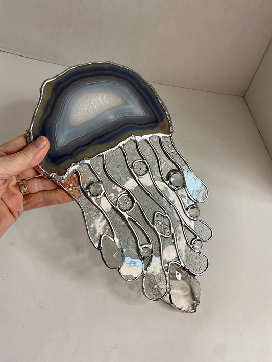 Agate Jellyfish in Silver | Stained Glass Suncatcher by Hip Chick Glass, Handmade Stained Glass Sun Catcher, Original Glass Art