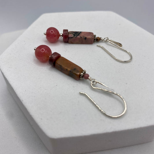 Rhodochrosite & Ruby Dangle Earrings by Hip Chick Glass, Sterling Silver Earrings, Handmade Gemstone Jewelry, Handmade Jewelry Gift