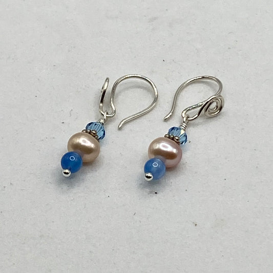 Pearl, Agate & Crystal Dangle Earrings by Hip Chick Glass, Sterling Silver Earrings, Handmade Gemstone Jewelry, June Birthstone Gift
