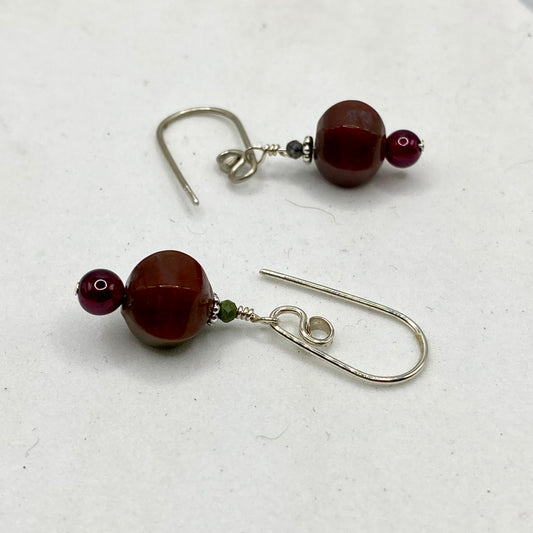 Garnet & Rhodonite Dangle Earrings by Hip Chick Glass, Sterling Silver Earrings, Handmade Gemstone Jewelry, Handmade Jewelry Gift, Birthstone Earrings