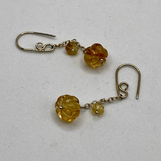 Carved Citrine Dangle Earrings by Hip Chick Glass, Sterling Silver Earrings, Handmade Gemstone Jewelry, Handmade Jewelry Gift, November Birthstone