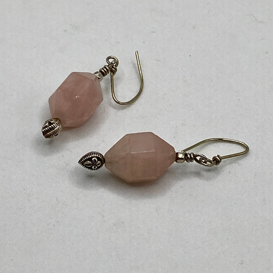 Rose Quartz Dangle Earrings by Hip Chick Glass, Sterling Silver Earrings, Handmade Gemstone Jewelry, Handmade Jewelry Gift, Birthstone Earrings