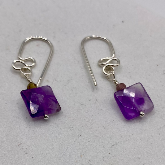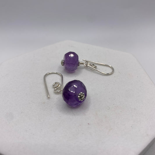 Faceted Amethyst Earrings by Hip Chick Glass, Sterling Silver Earrings, Handmade Gemstone Jewelry, February Birthstone Gift