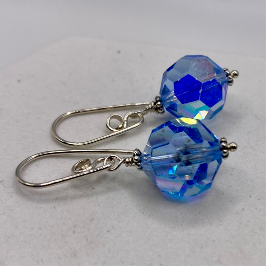Blue Crystal Drop Earrings by Hip Chick Glass, Sterling Silver Earrings, Handmade Crystal Earrings, Handmade Jewelry Gift
