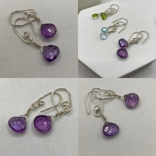 Handmade Amethyst Earrings by Hip Chick Glass, Sterling Silver Wire Wrap Earrings, Handmade Gemstone Jewelry, February Birthstone Gift