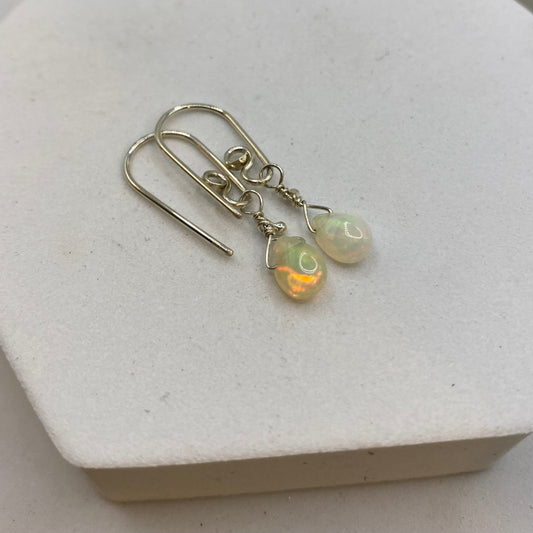 Ethiopian Opal Earrings by Hip Chick Glass, Sterling Silver Earrings, Handmade Gemstone Jewelry, October Birthstone Gift