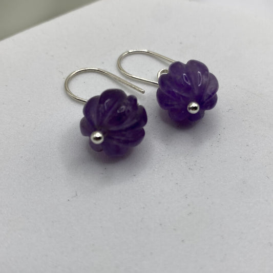 Fluted Amethyst Earrings by Hip Chick Glass, Sterling Silver Earrings, Handmade Gemstone Jewelry, February Birthstone Gift