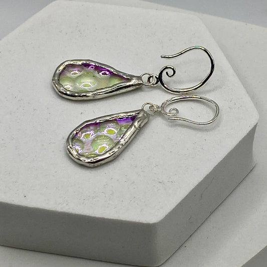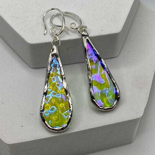 Wavy Teardrop Earrings | Stained Glass Earrings by Hip Chick Glass, Stained Glass Dangle Drop Earrings, Stained Glass Earrings