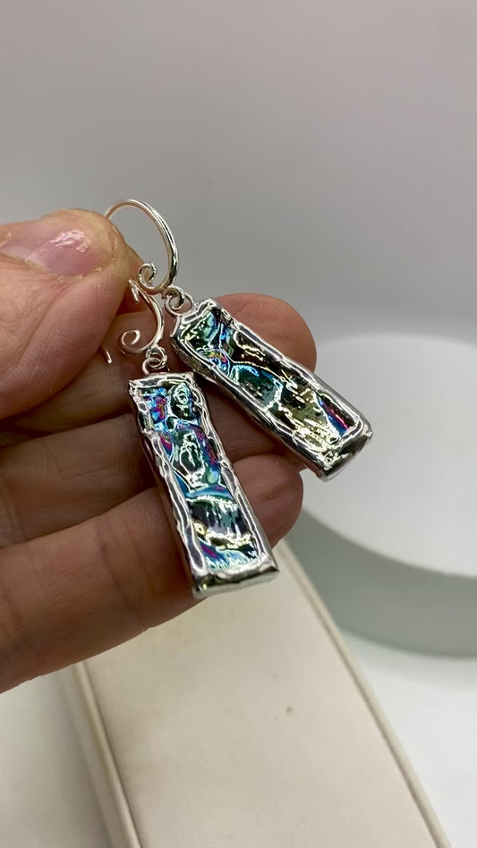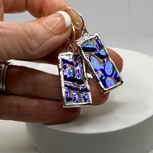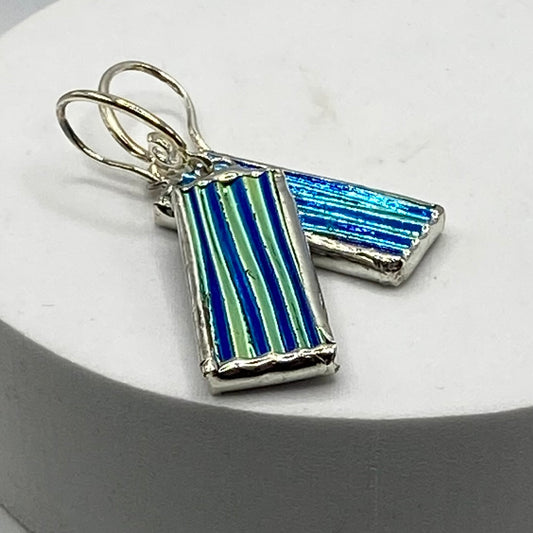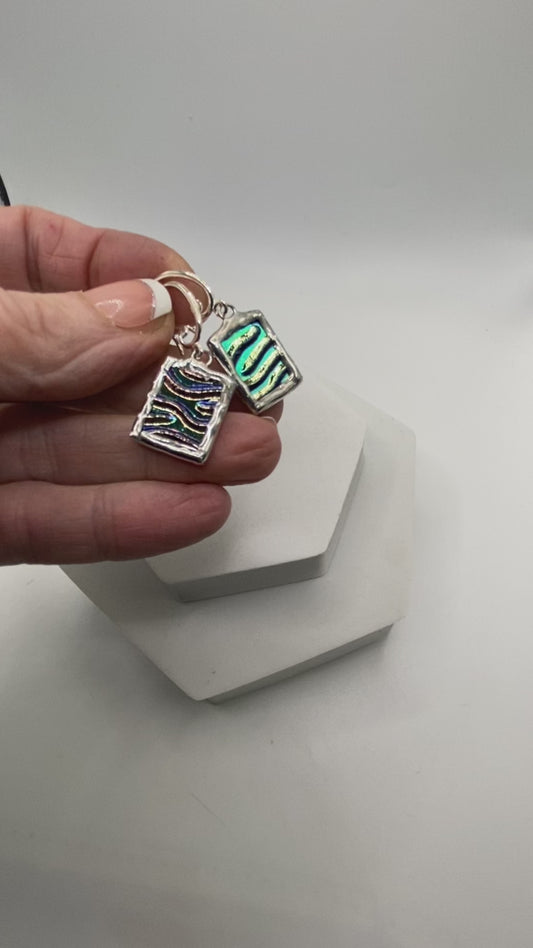 Shimmering Rectangle Earrings | Stained Glass Earrings by Hip Chick Glass, Stained Glass Dangle Drop Earrings, Stained Glass Earrings