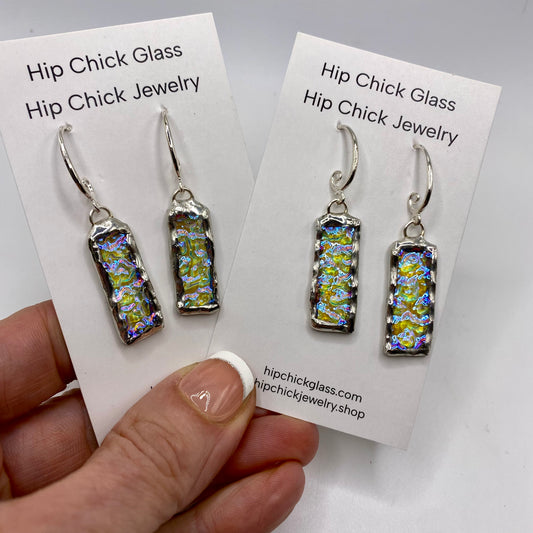 Iridescent Rectangle Earrings | Stained Glass Earrings by Hip Chick Glass, Stained Glass Dangle Drop Earrings, Stained Glass Earrings