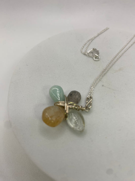 Quartz, Prehnite, Labradorite, Amazonite Gemstone Wire Wrap Pendant Necklace by Hip Chick Glass, Handmade Sterling Silver Jewelry, Handmade Gemstone Jewelry, Birthstone Gift