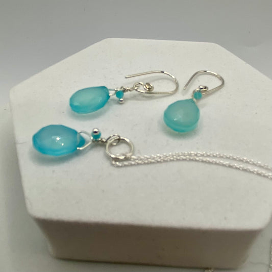 Blue Chalcedony Necklace Earring Set by Hip Chick Glass, Handmade Sterling Silver Jewelry, Handmade Gemstone Jewelry, Birthstone Gift