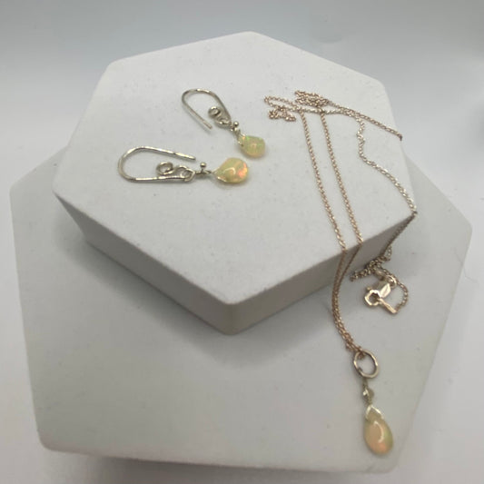 Ethiopian Opal Necklace Earring Set by Hip Chick Glass, Handmade Sterling Silver Jewelry, Handmade Gemstone Jewelry, October Birthstone Gift