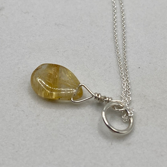 Rutilated Quartz Pendant Necklace by Hip Chick Glass, Handmade Sterling Silver Jewelry, Handmade Gemstone Jewelry, Birthstone Gift