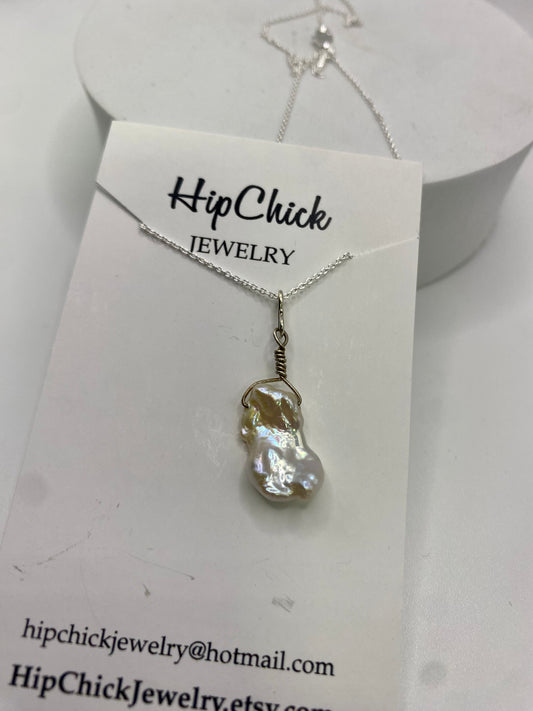 Baroque Pearl Pendant Necklace by Hip Chick Glass, Handmade Sterling Silver Jewelry, Handmade Gemstone Jewelry, June Birthstone Gift