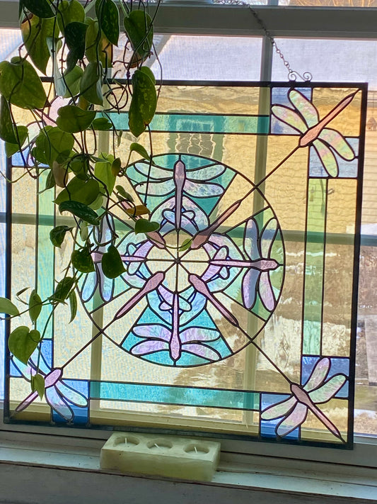 Dragonfly Kaleidoscope | Stained Glass Window Panel by Hip Chick Glass, LLC, Original Handmade Glass Art
