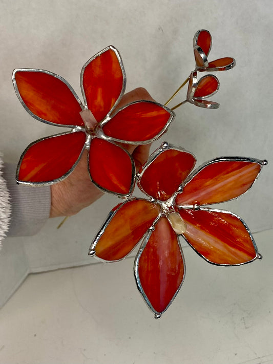 Carnelian Orange Plant Stakes by Hip Chick Glass | Stained Glass Flower Bouquet, Glass Flowers with Quartz Crystals on a Stem, Handmade Home Decor, Wedding Bouquet Keepsake, Tabletop Decor