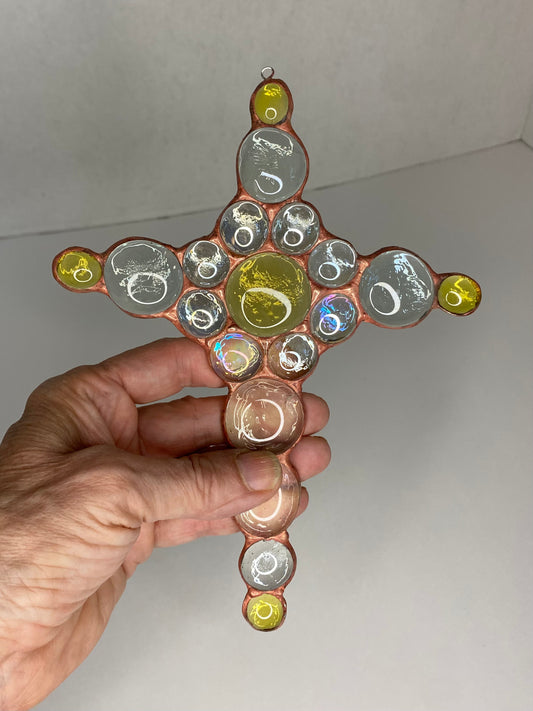 Yellow Cross Suncatcher| Stained Glass Suncatcher by Hip Chick Glass, LLC, Glass Sun Catcher, Handmade Glass Art