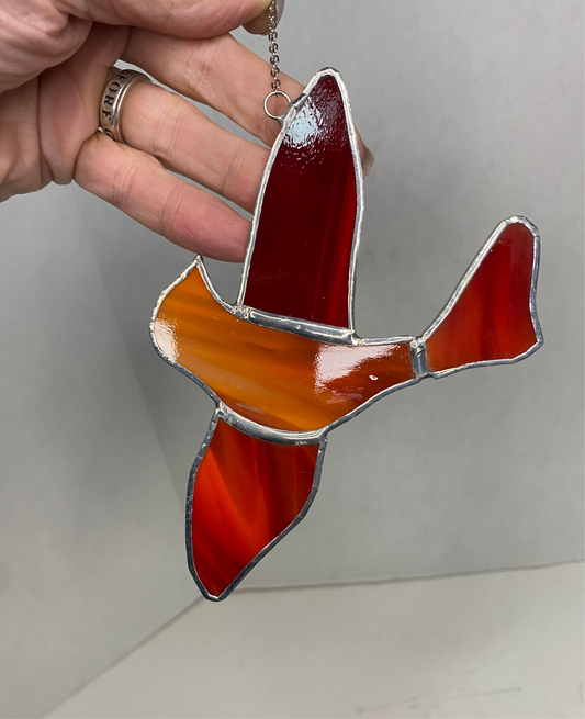 Red Bird Twirling | Stained Glass Suncatcher by Hip Chick Glass, LLC, Glass Sun Catcher, Original Handmade Glass Art