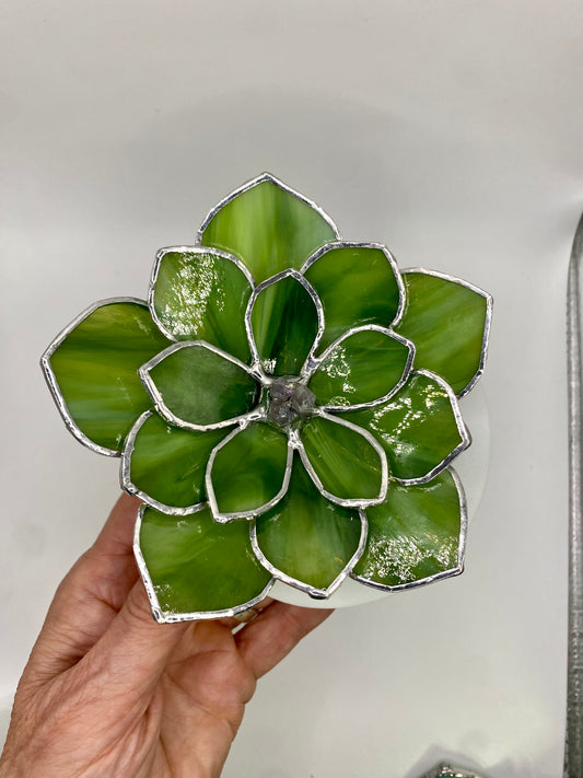 Stained Glass Succulent by Hip Chick Glass, Handmade Stained Glass Flower, Original Glass Art