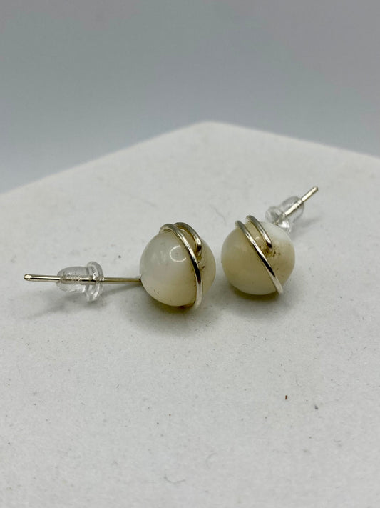 Mother of Pearl Silver Stud Earrings by Hip Chick Glass, Handmade Birthstone Earrings, Pearl Earrings, Pearl Stud Earrings, Sterling & Gemstone Wire Wrap Earrings