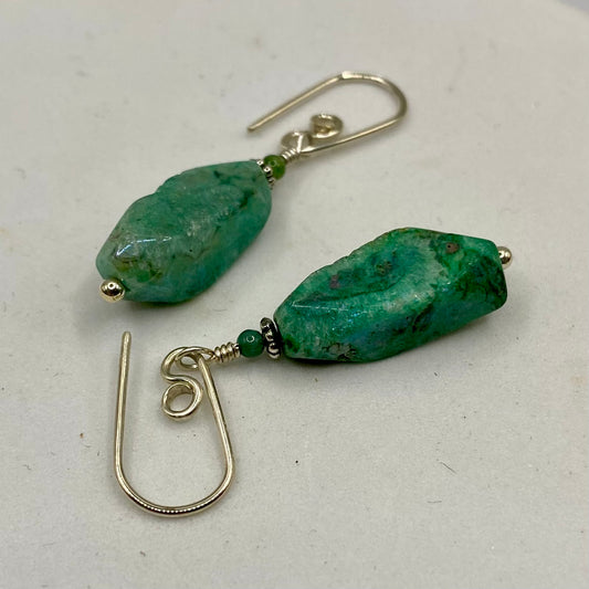 Prehnite Dangle Earrings by Hip Chick Glass, Sterling Silver Earrings, Handmade Gemstone Jewelry