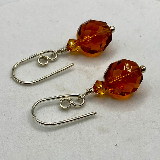Orange Swarovski Crystal Earrings by Hip Chick Glass, Sterling Silver Dangle Drop Earrings, Handmade Crystal Drop Earrings, Handmade Jewelry Gift