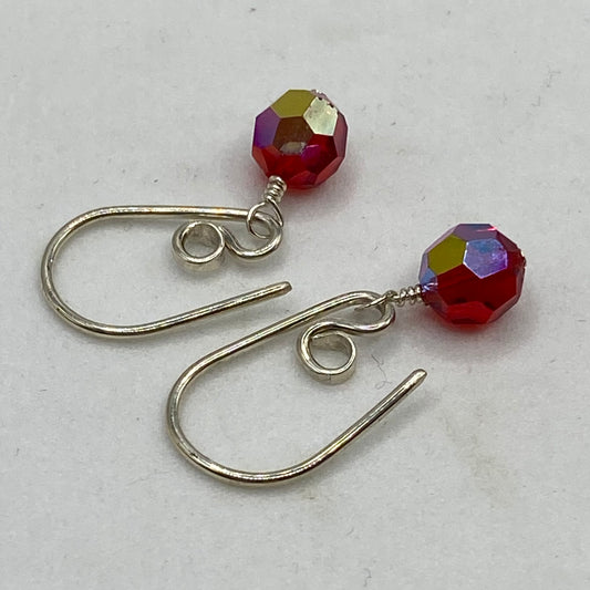 Dainty Red Crystal Earrings by Hip Chick Glass, Sterling Silver Earrings, Handmade Vintage Crystal Jewelry, Handmade Jewelry Gift