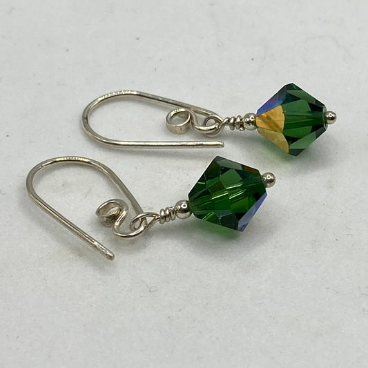 Vintage Green Crystal Earrings by Hip Chick Glass, Sterling Silver Earrings, Handmade Green Crystal Jewelry, Handmade Green Earrings