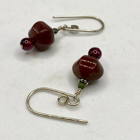 Garnet & Rhodonite Earrings by Hip Chick Glass, Handmade Sterling Silver Earrings, Handmade Boho Jewelry, Handmade Jewelry Gift, January Birthstone Earrings