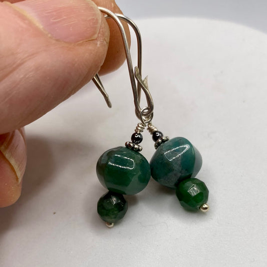 Green Aventurine, Agate & Hematite Earrings by Hip Chick Glass, Sterling Silver Earrings, Handmade Gemstone Jewelry, Handmade Jewelry Gift