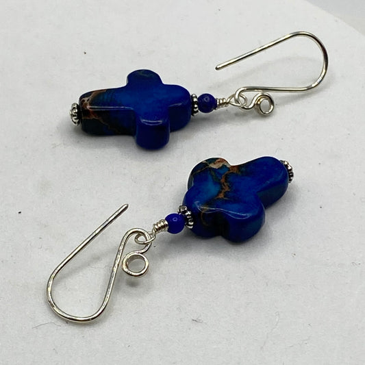 Blue Cross Earrings by Hip Chick Glass, Sterling Silver Earrings, Handmade Gemstone Jewelry, Handmade Jewelry Gift
