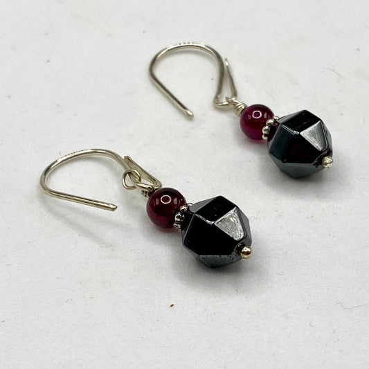 Garnet & Hematite Earrings by Hip Chick Glass, Sterling Silver Earrings, Handmade Garnet Earrings, Handmade Hematite Earrings, January Birthstone Gift