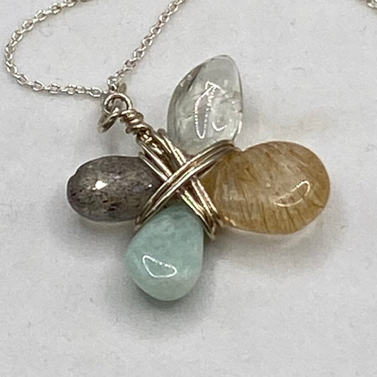 Quartz, Prehnite, Labradorite, Amazonite Gemstone Pendant by Hip Chick Glass, Handmade Sterling Silver Jewelry, Handmade Gemstone Jewelry, Silver Wire Wrap Pendant Necklace