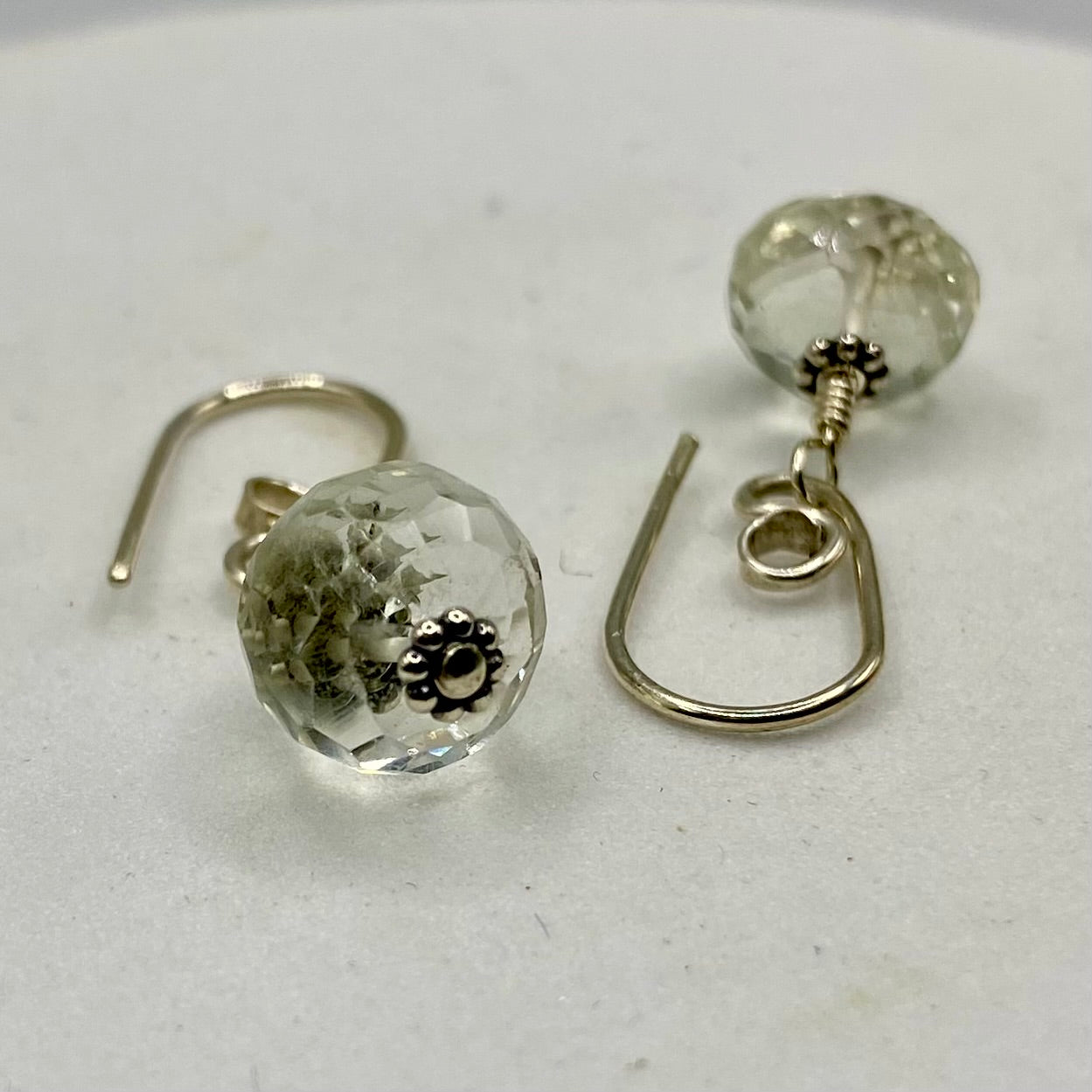 Rare Faceted Green Amethyst Earrings by Hip Chick Glass, Sterling Silver Earrings, Handmade Gemstone Jewelry, February Birthstone Gift