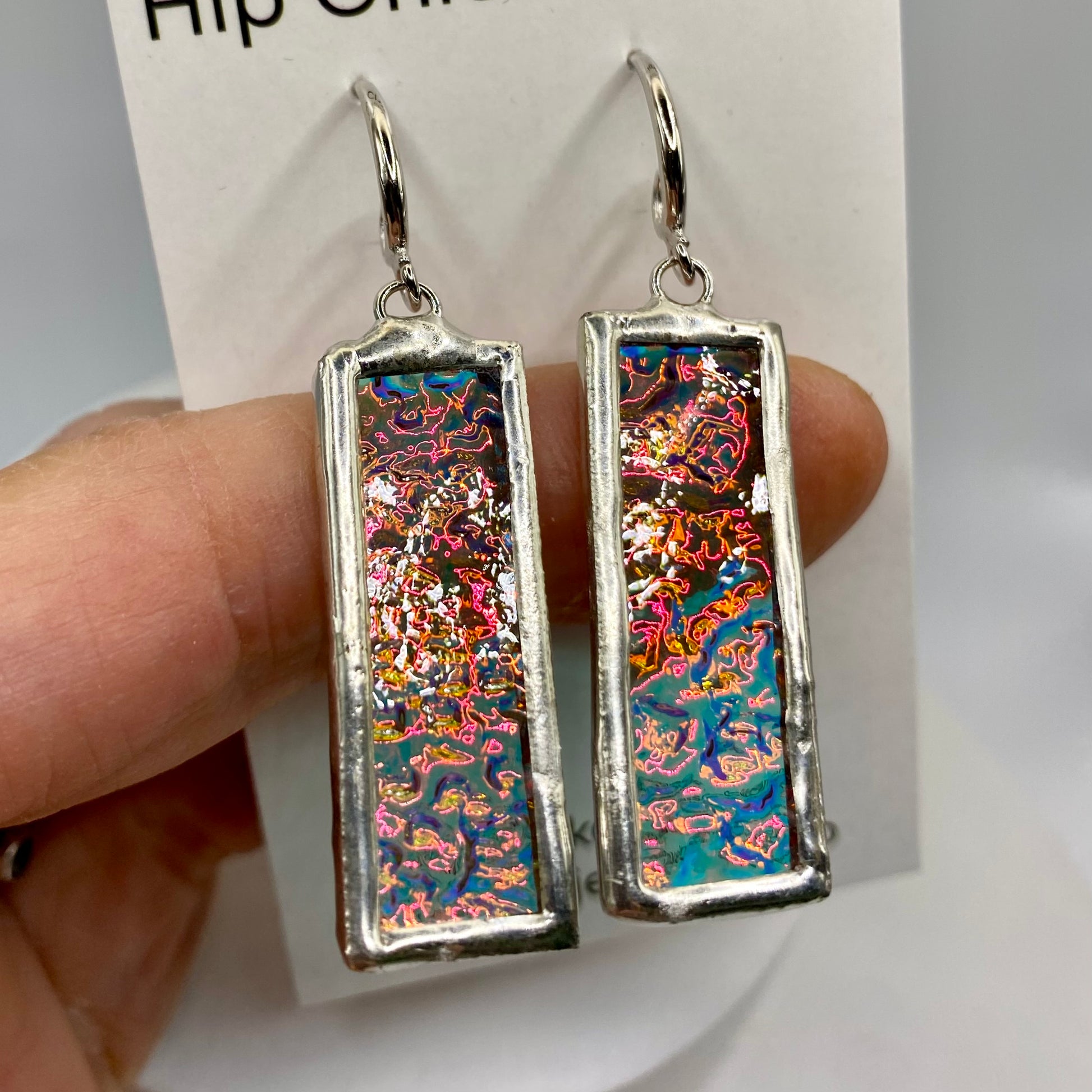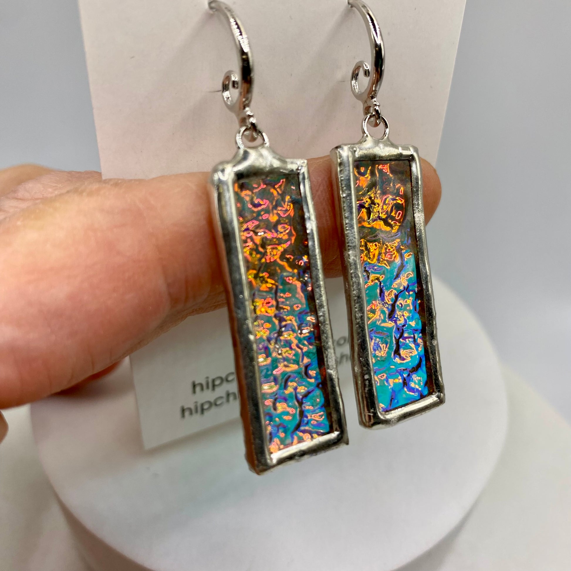 - #hipchickglass #hipchick #stainedglass #glassart #glassartist #stainedglasswindow #suncatcher #stainedglasswindowpanel #glass #glassearrings #stainedglassearrings #stainedglassjewelry #dichroicglass #dichroicglassearrings #jewelry #dichroicglassjewelry #earrings #handmadejewelry #handmadedangledropearrings #suncatcherearrings #stainedglasssuncatcherearrings
