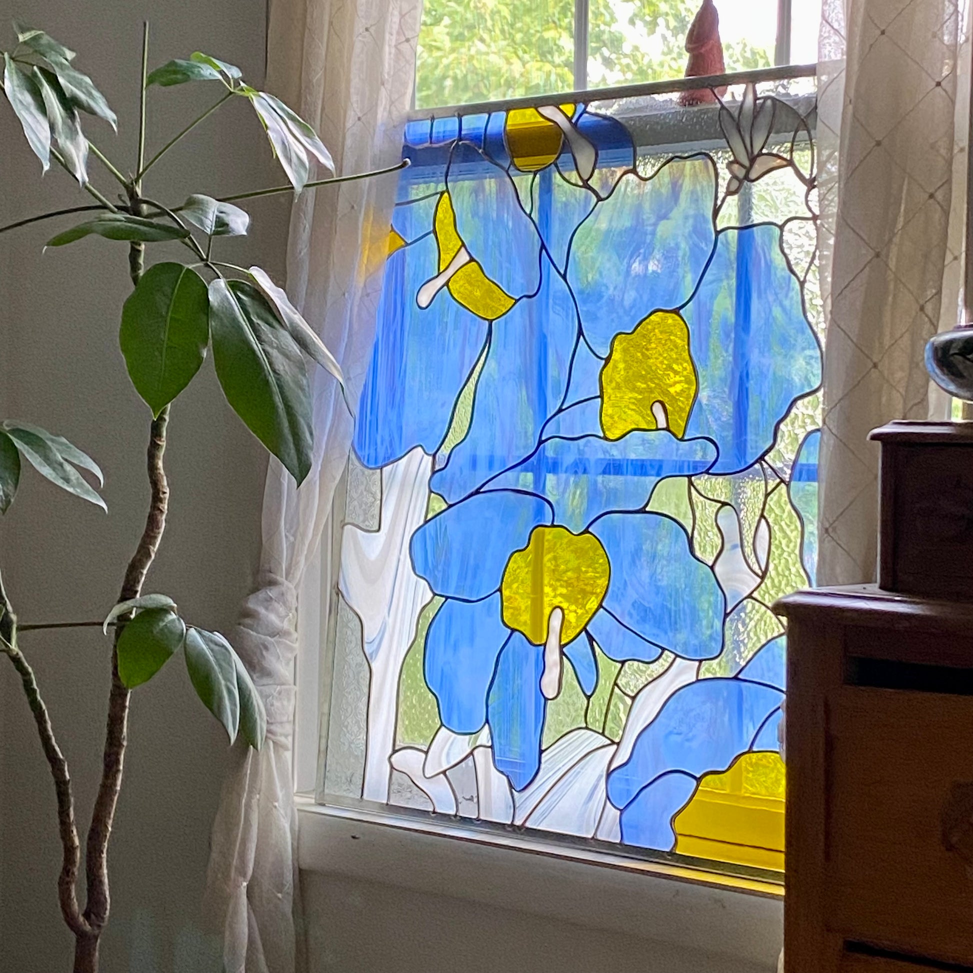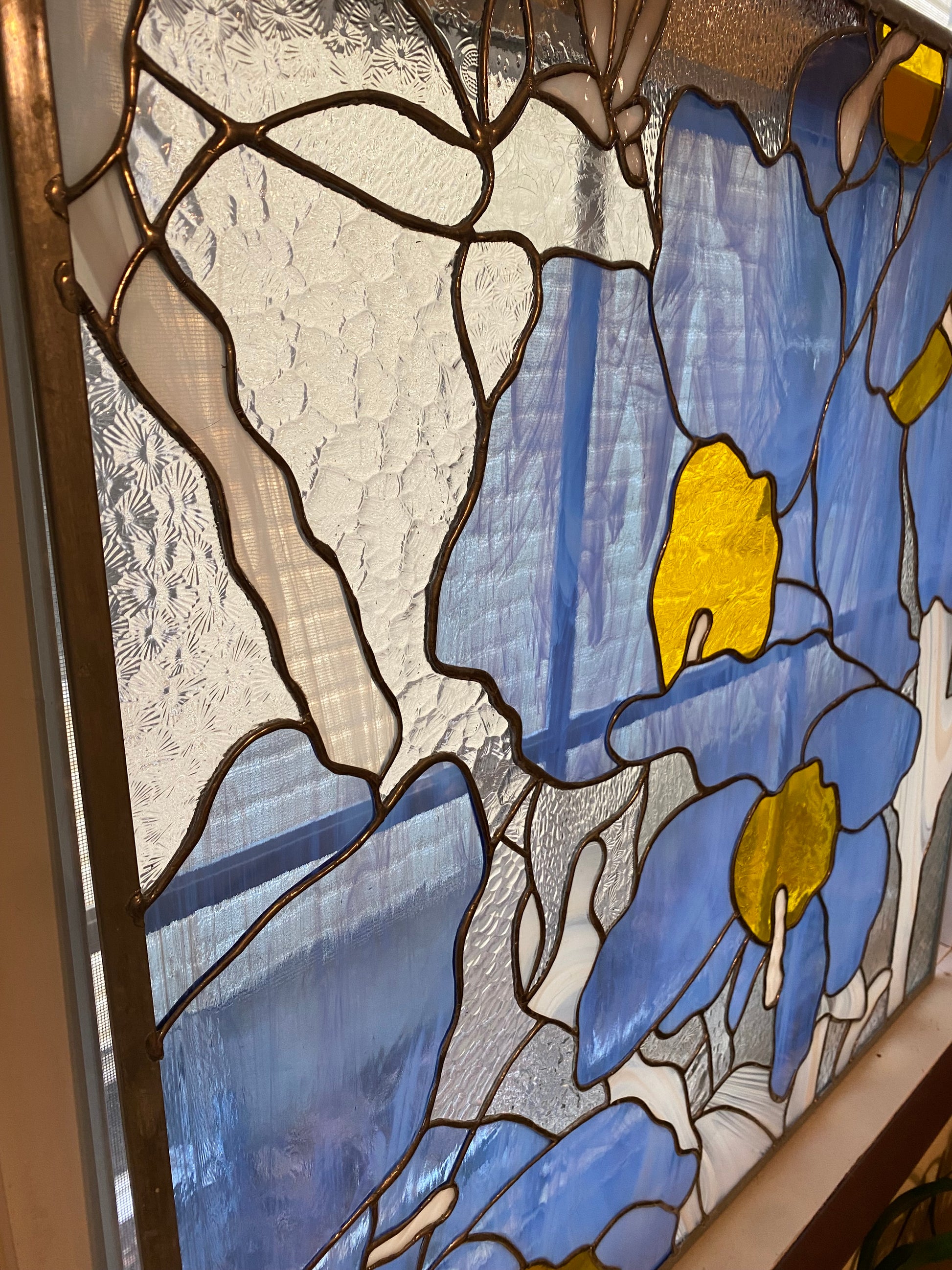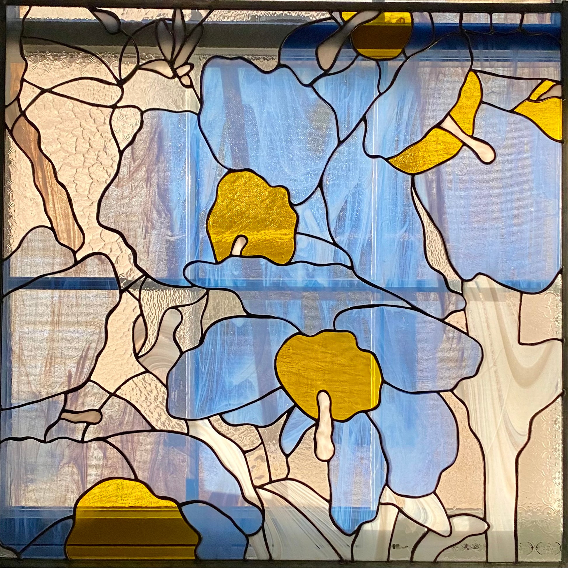 Himalayan Blue Poppies | Stained Glass Window Panel by Hip Chick Glass, LLC, Original Handmade Glass Art
