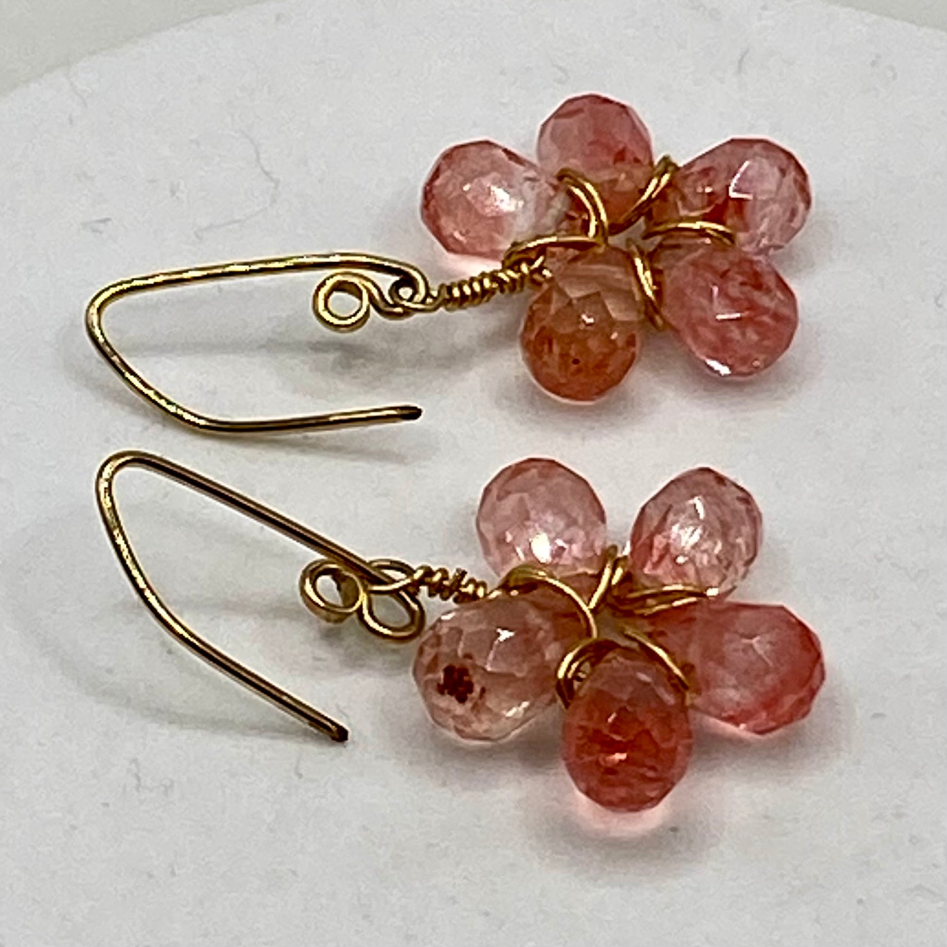 Cherry Quartz Wire Wrap Flower Earrings by Hip Chick Glass, 14 Karat Gold Fill Earrings, Handmade Gemstone Jewelry, Birthstone Gift