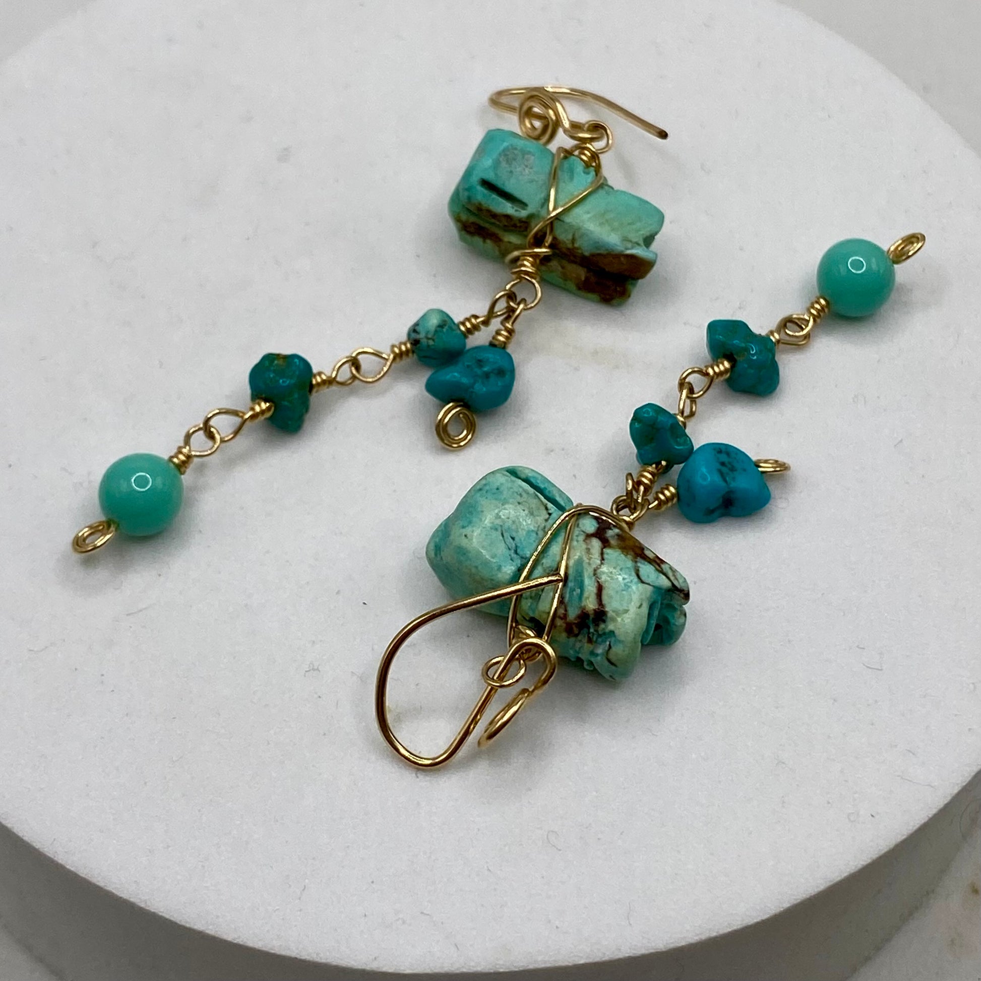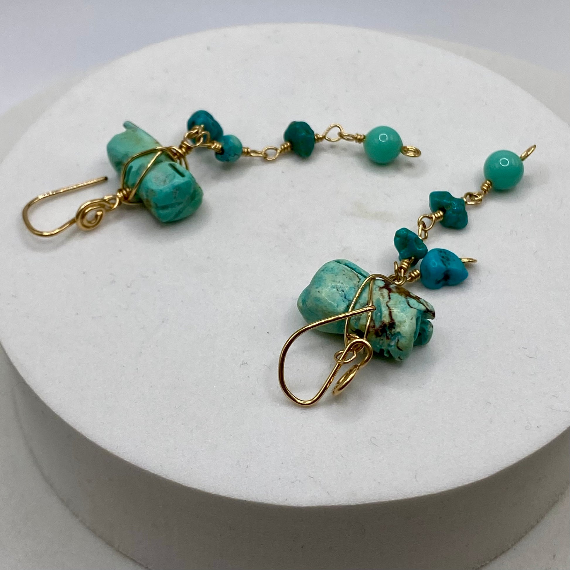 #hipchickglass #hipchick #hipchickjewelry #earrings #handmadejewelry #dangleearrings #handmadegemstoneearrings #handmadeearrings #birthstoneearrings #turquoiseearrings #turquoise #goldearrings #goldhandmadeearrings #gemstoneearrings