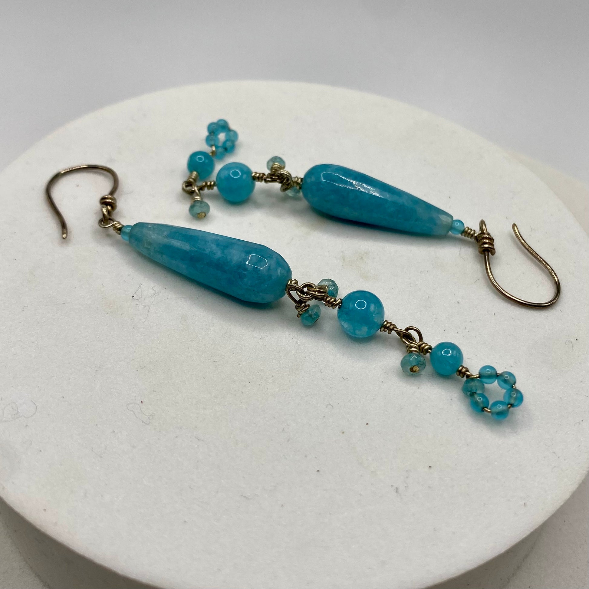 Long Aquamarine & Angelite Dangle Earrings by Hip Chick Glass, Sterling Silver Earrings, Handmade Gemstone Jewelry, March Birthstone Gift