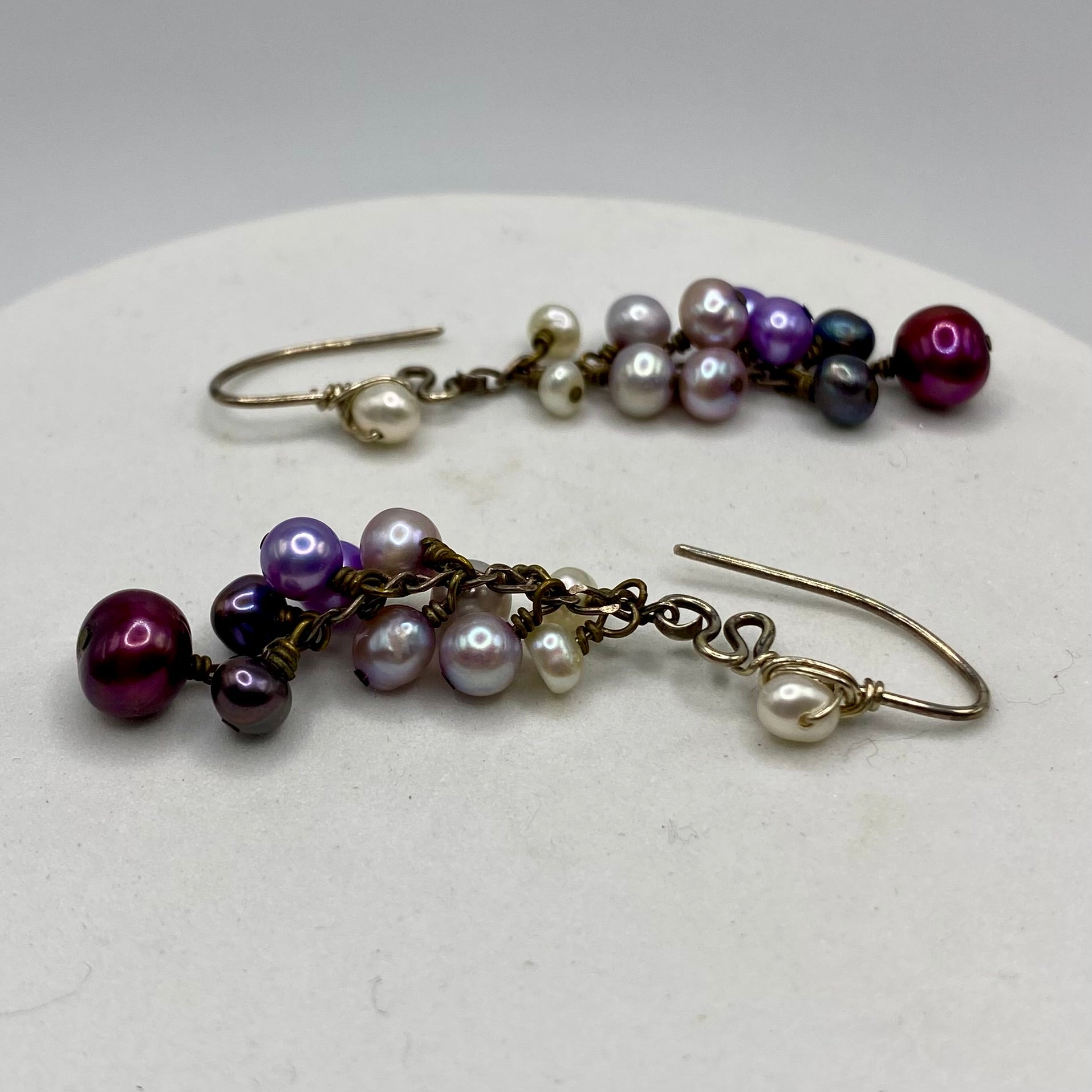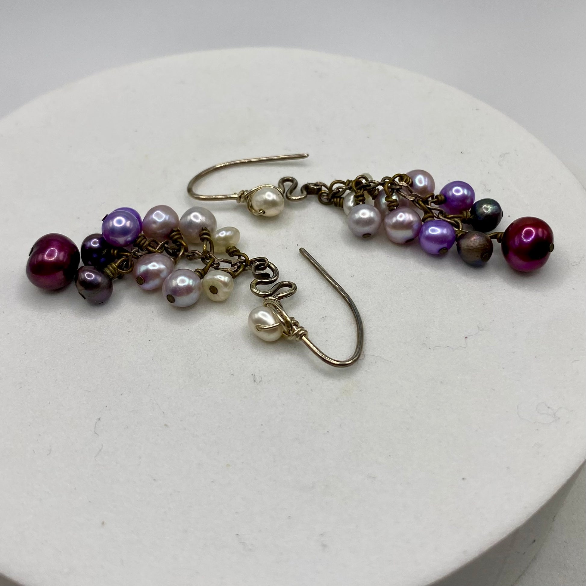 Ombré Purple Pearl Cluster Dangle Earrings by Hip Chick Glass, Sterling Silver Earrings, Handmade Gemstone Jewelry, June Birthstone Gift