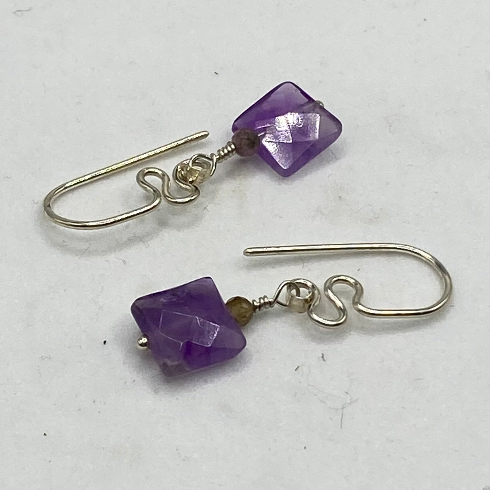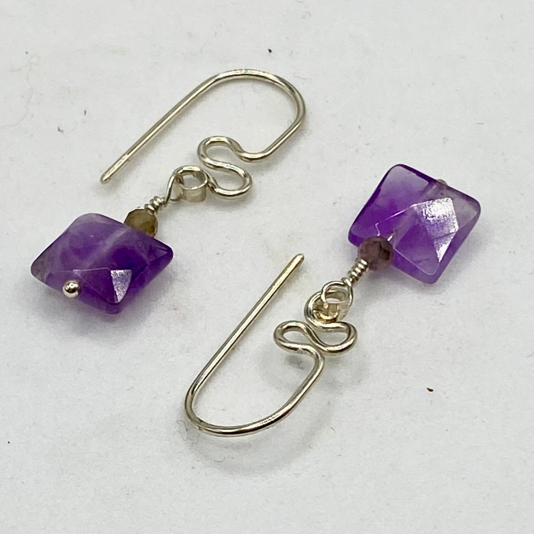 Square Faceted Amethyst Earrings by Hip Chick Glass, Sterling Silver Amethyst Earrings, Handmade Boho Gemstone Jewelry, February Birthstone Gift