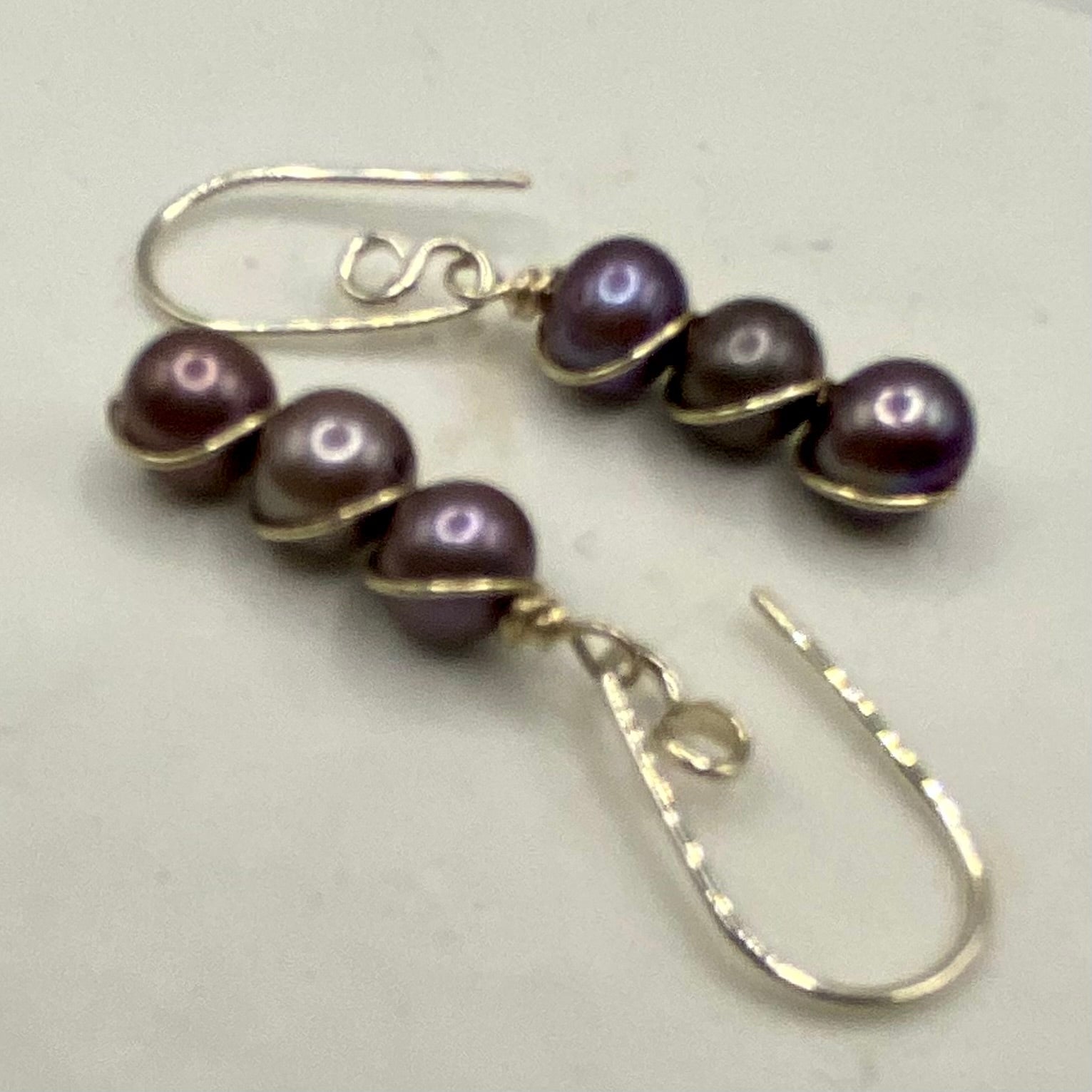 Expertly handcrafted by Hip Chick Glass, these Pearl Wire Wrap Earrings feature stunning Sterling Silver wire wrapping for a unique and elegant look. As November's birthstone, Amethyst is believed to bring calmness and balance, making these earrings a thoughtful gift for any occasion. Elevate your jewelry collection with these handmade gemstone earrings.