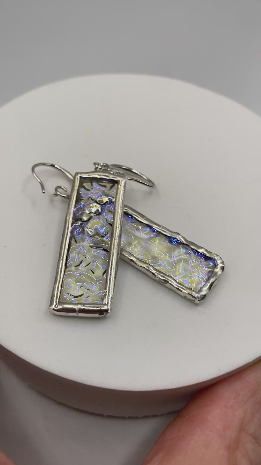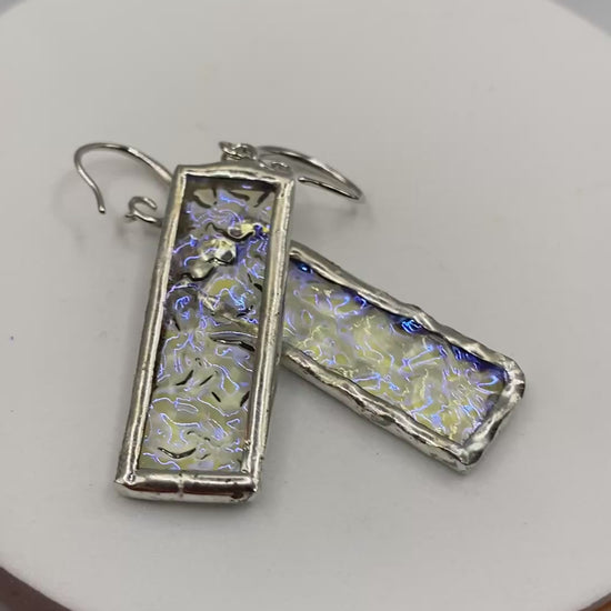 Iridescent Rectangle Earrings | Stained Glass Earrings by Hip Chick Glass, Stained Glass Dangle Drop Earrings, Stained Glass Earrings