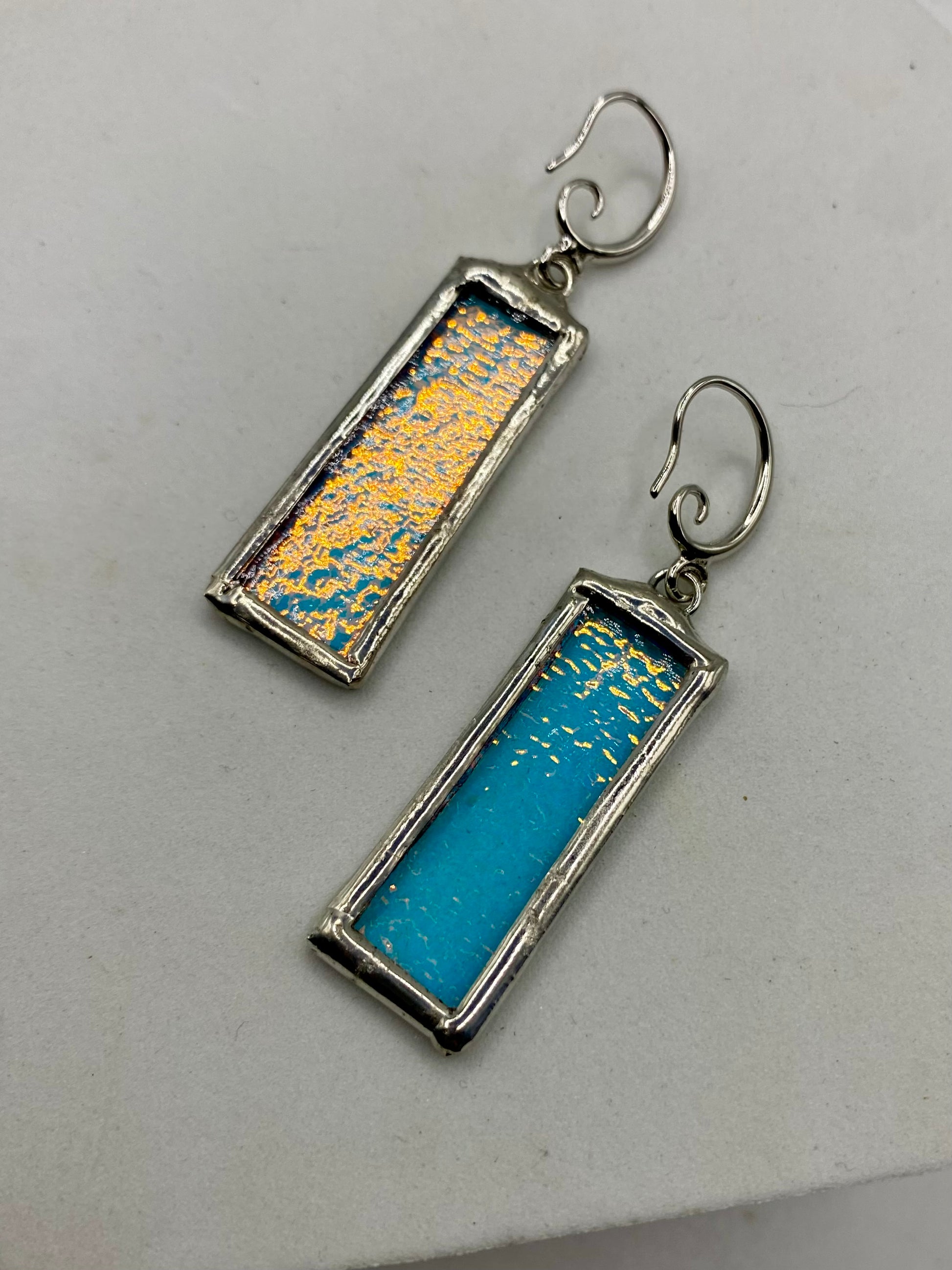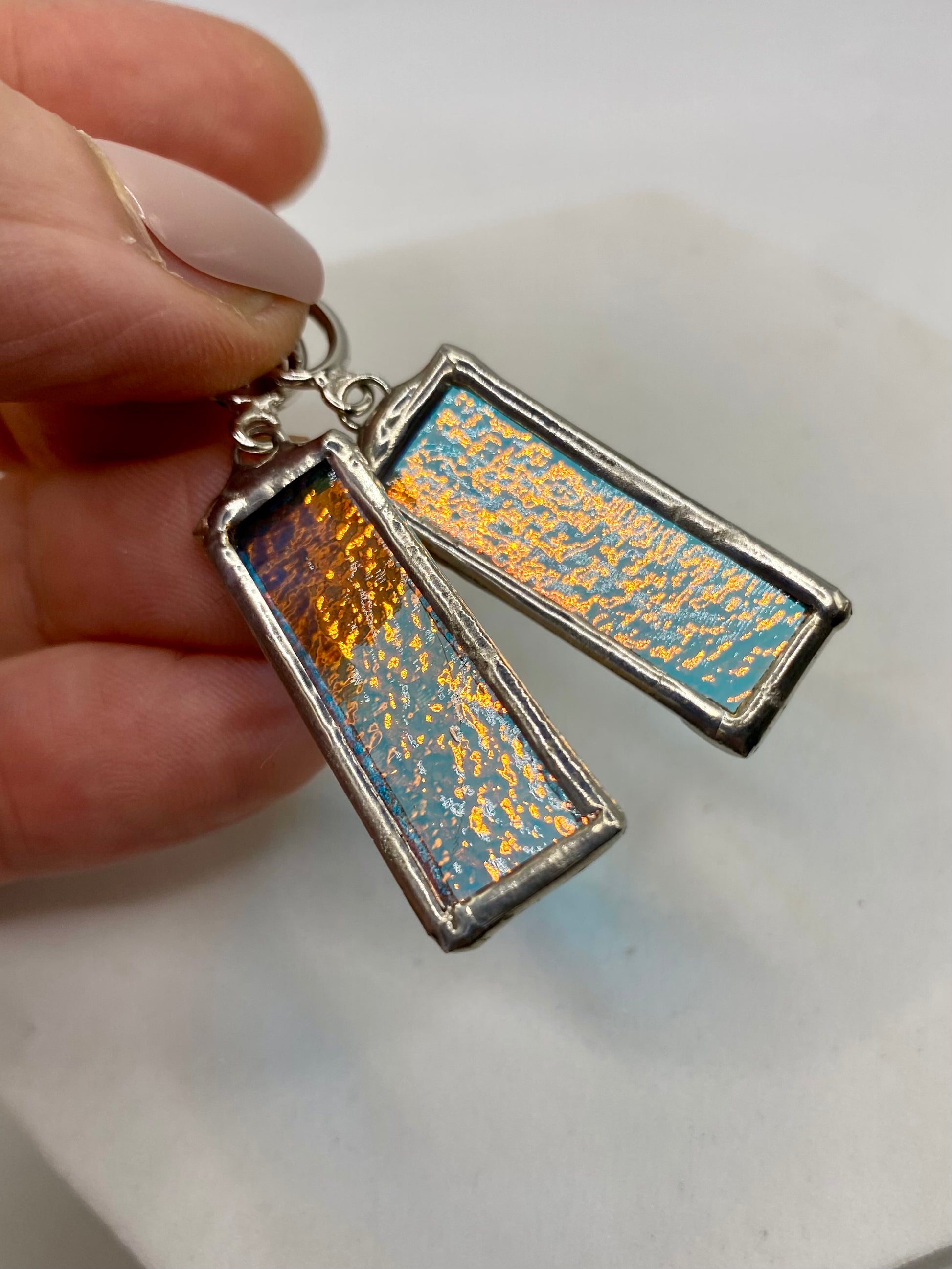 #hipchickglass #hipchick #stainedglass #glassart #glassartist #stainedglasswindow #suncatcher #stainedglasswindowpanel #glass #glassearrings #stainedglassearrings #stainedglassjewelry #dichroicglass #dichroicglassearrings #jewelry #dichroicglassjewelry #earrings #handmadejewelry #handmadedangledropearrings #statementearrings #geometricearrings