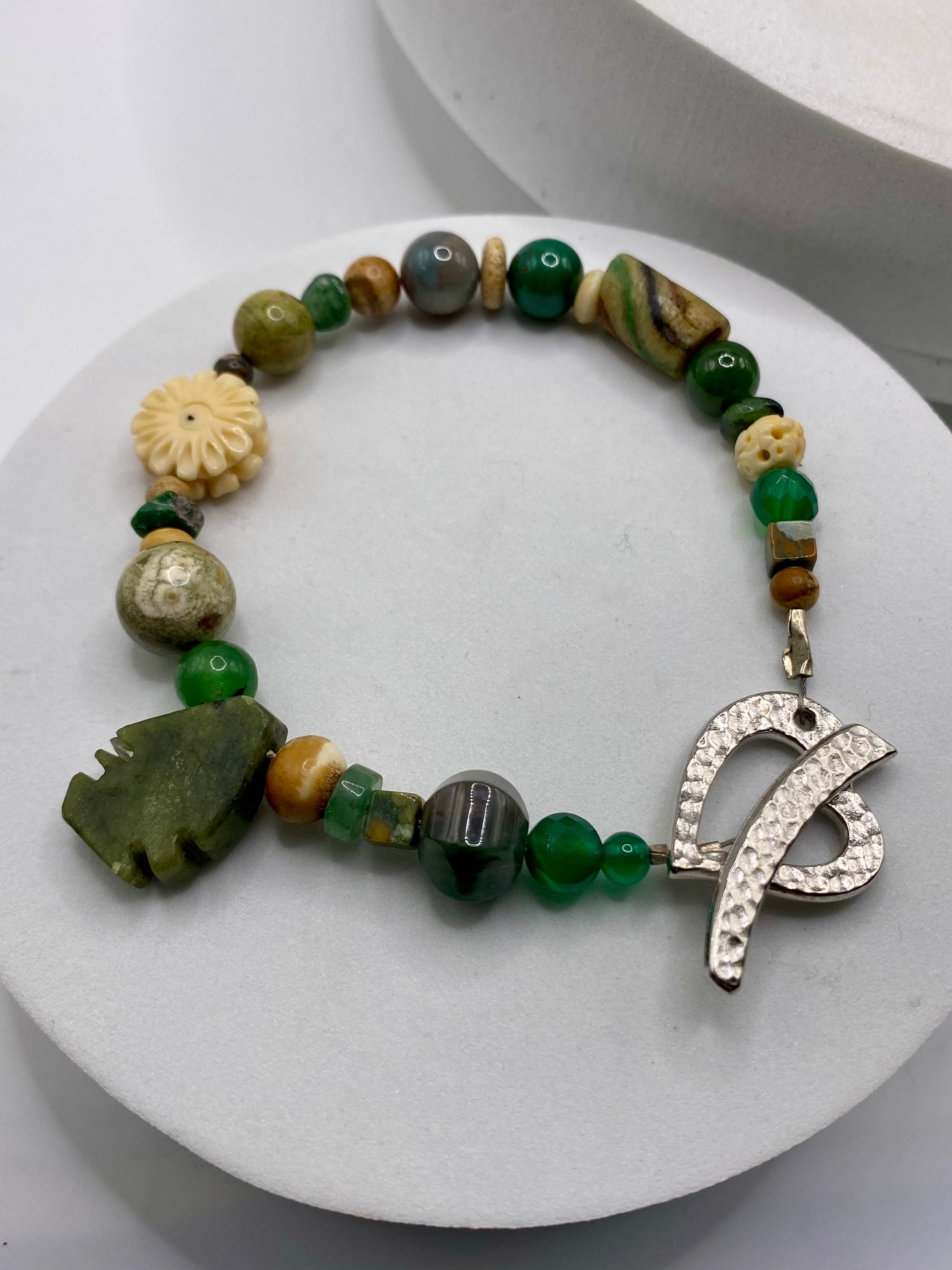 Valentines Day Bracelet with Heart Clasp & Mixed Green Gemstones by Hip Chick Glass, Handmade Bracelet, Handmade Gemstone Bracelet, Birthstone Gift