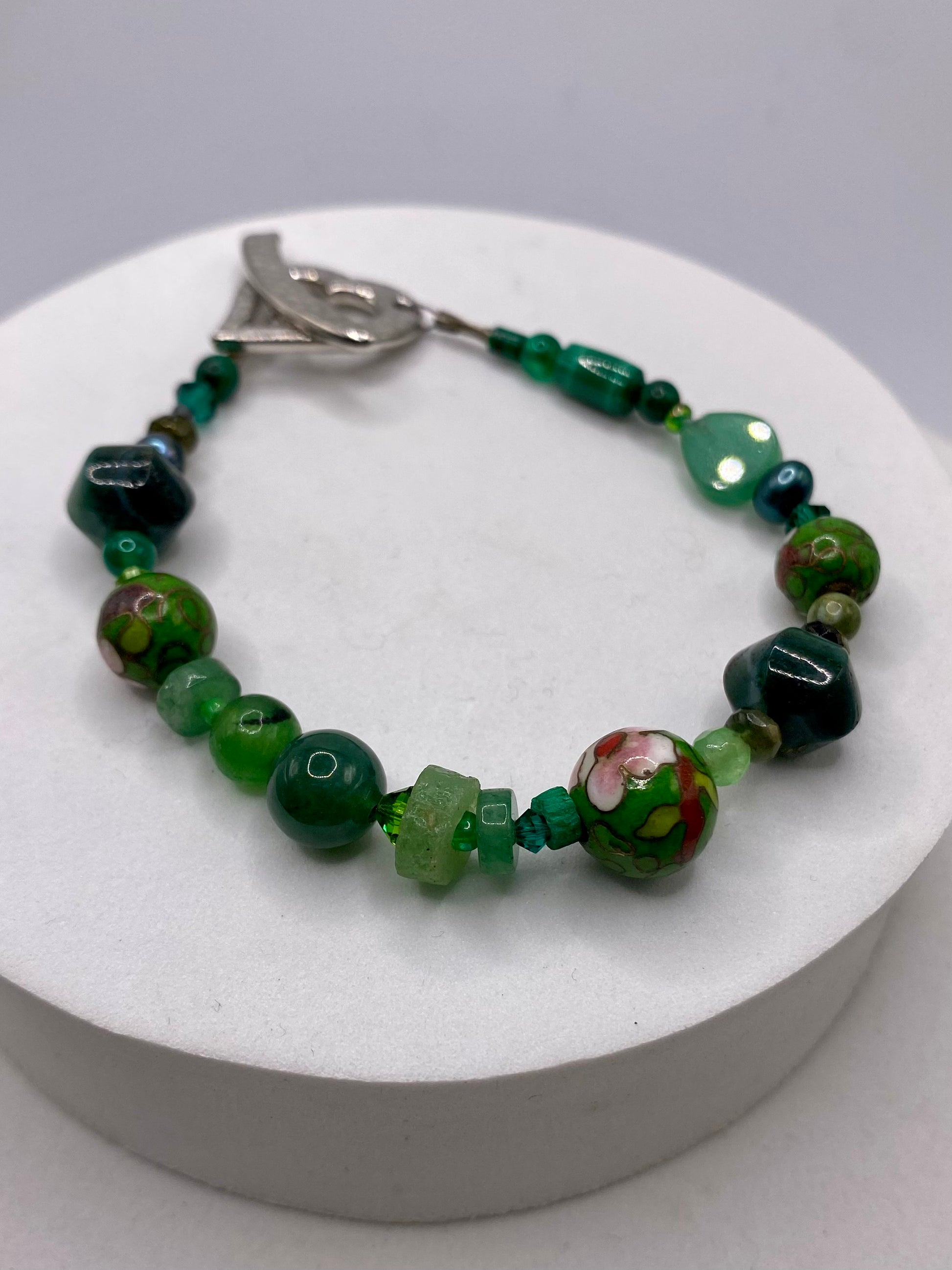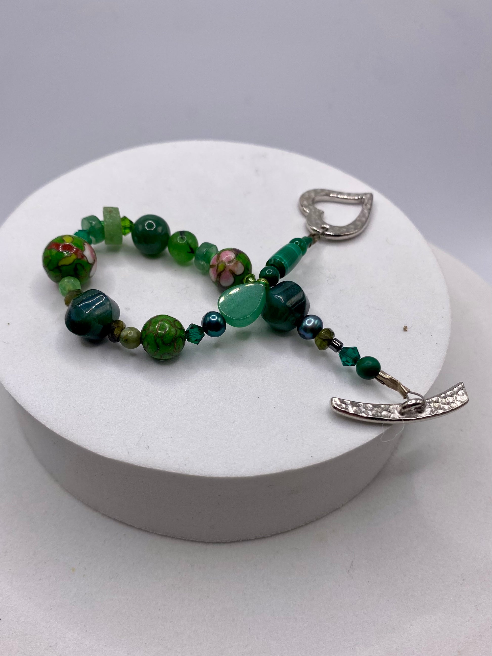 Valentines Day Bracelet with Heart Clasp & Mixed Green Gemstones by Hip Chick Glass, Handmade Bracelet, Handmade Gemstone Bracelet, Birthstone Gift